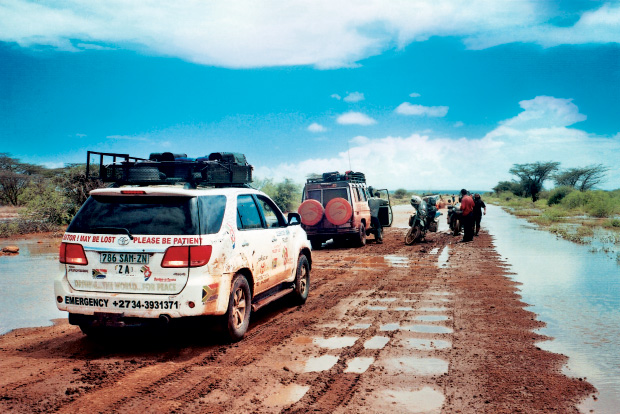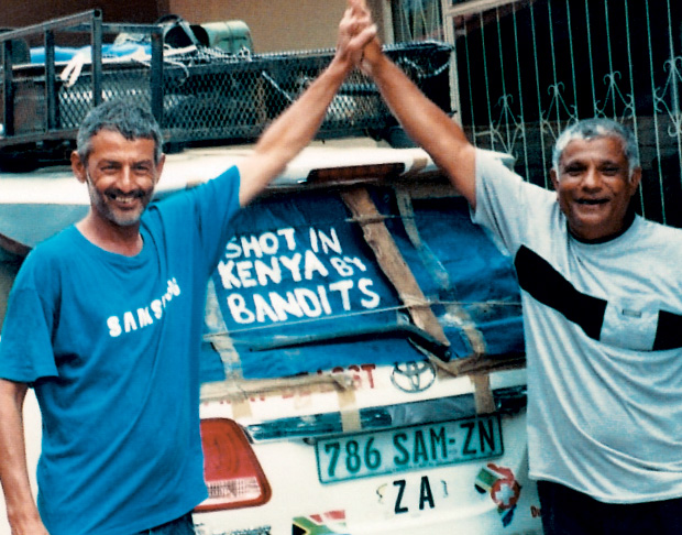 Almost 75000 km into the journey, there was a moment where it could have all gone terribly, horribly wrong. Ayob Vawda and Abdool Samath had been on the road for more than 20 months and, apart from a single puncture in Yemen, nothing had disrupted their wonderful odyssey that had begun far away in Cape Town, where anything seemed possible. “We were on our way back home, running through the mountainous region of Kenya, and were told that the road through was impassable because of heavy rains.
